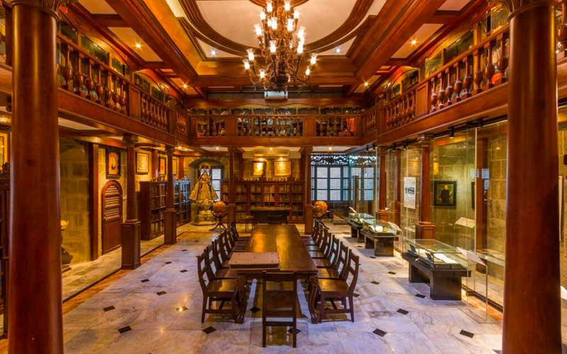 It occupied a big space; lighted, and lovely; it had twenty shelves made of a very fine and exquisite wood called 'narra', with many moldings in different colors, and a carving representing an Augustinian scholar in the extreme end of each shelf. Each shelf had eight compartments or divisions; in each one there were from twenty to thirty books […] old and new, dealing about all types of subject matters."