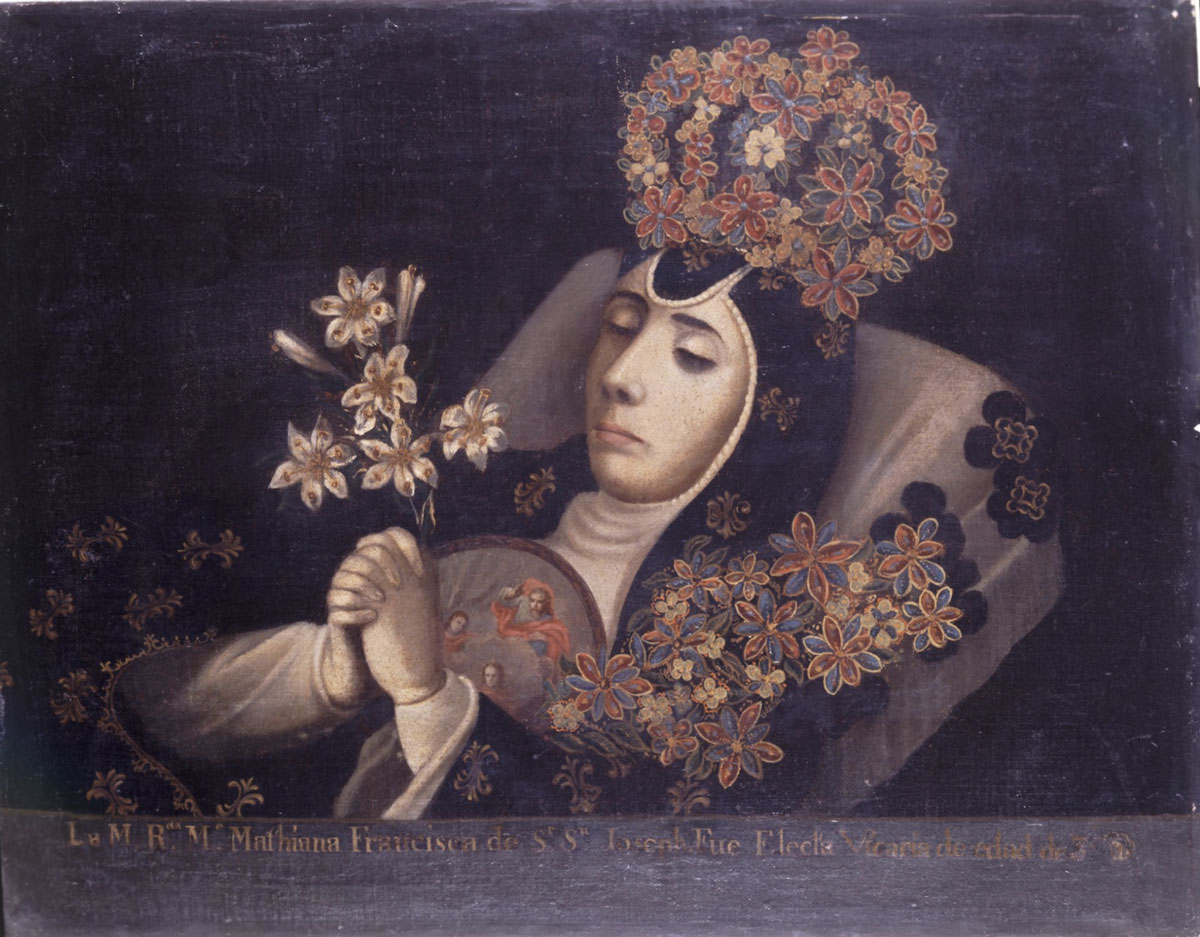 In Spanish colonial American art, certain revered nuns had the privilege to have their spiritual devotion and legacy remembered and passed down through generations. Crowned-nun portraits, also known as retratos de monjas coronadas, was one of the practices to honor and immortalize these religious women in New Spain (modern-day Mexico) during the seventeenth and eighteenth centuries. These portraits typically commemorated the exemplary lives and spiritual authority of these religious women, either upon their profession of vows or after their death.