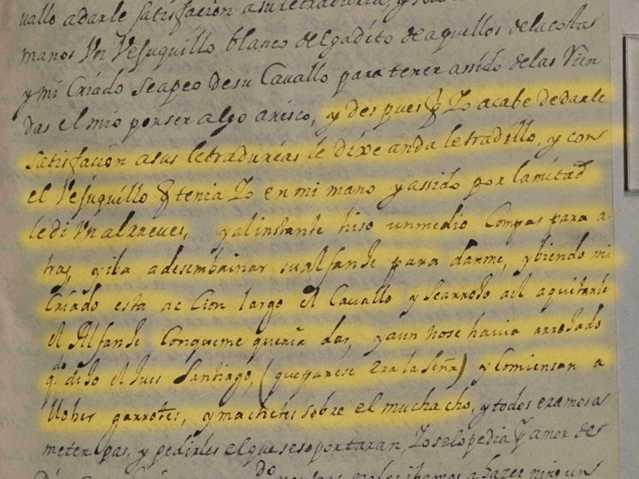 The juez mayor disregarded Fray Serrano’s demand for a written mandate from the oidor fiscal and ordered about three hundred residents of Dongalo of all ages to build the fence on the indicated Monday. Attempting to put a stop to the project, Fray Serrano along with his principales attendants and servants, appeared at the site of the construction of the fence, in an area known as Santa Lucía. Fray Serrano admonished the local judge and his chief counsel, Captain Pablo, for disobeying his orders to which the latter is purported to have responded, “I know very well what I do, and I know which are our lands and you don’t. We are making this fence because we know that up to this point, we have our lands and you do not know where yours are. And you are trying to take away what is ours” (img. 12). This was followed by an exchange of insults and accusations between the two parties.