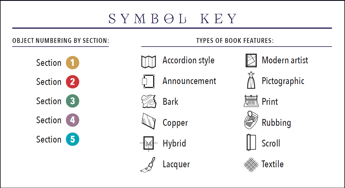 A guide to the colors and icons used throughout the exhibit. Click "view larger" to see a full-size version.