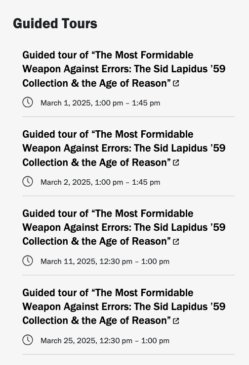 Reserve a 45-minute guided tour of the latest exhibition in the Milberg Gallery in Firestone Library at Princeton University. Tours meet in the lobby of Firestone Library. Click to see additional dates and make your reservation.